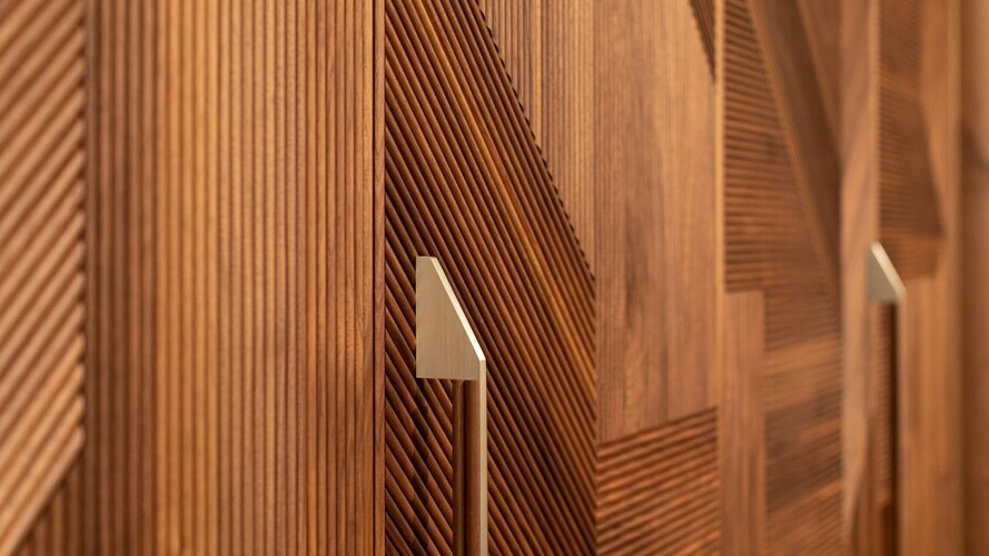 A unique technique for working Canaletto walnut was born in our carpentry workshop.