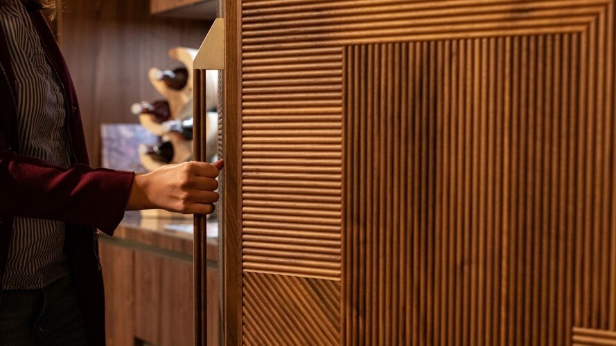 The idea was born when we were making the doors for the Glamour collection kitchens. When we were cutting out the Canneté pieces, we realised that many of them could not be used because they were too small for a kitchen door.