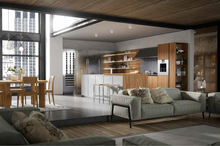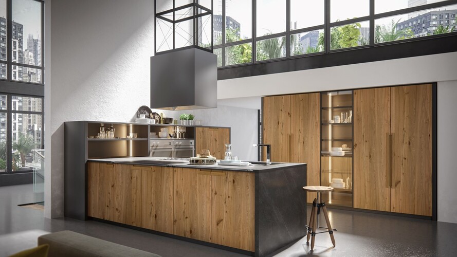 Ed è proprio attraverso la rivisitazione in chiave moderna dello stile industriale che l’arredo è in grado di far rivivere l’emozione di un tempo passato dove il rovere è il protagonista indiscusso.